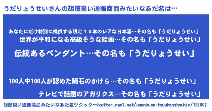 | ヘコむあだ名 | 『うだっちょ』『牛乳』『うだにー』 |