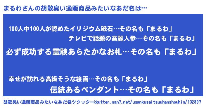 | ヒーロー風カッコイイあだ名 | 『スーパーマルワ』『正義の使者まるわ』 |