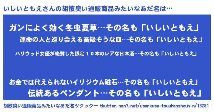 | 伝説のあだ名 | 『孤高の僧侶いしいともえ』 |