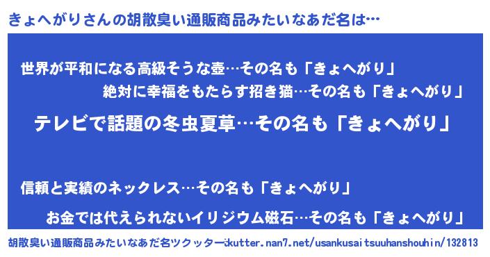 きょへがりさんの胡散臭い通販商品みたいなあだ名をツクッター!