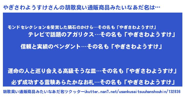 意味不明あだ名 | 『とにかく怪しいやぎさわようすけ』 |