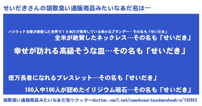 | 意味不明あだ名 | 『せいだきフォーエバー』 |