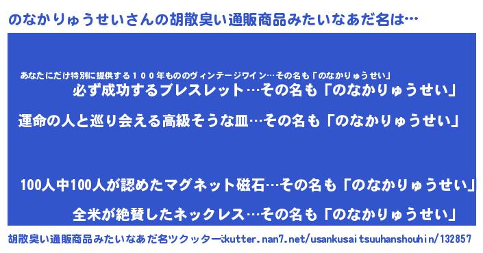 | 意味不明あだ名 | 『のなかりゅうせいフォーエバー』 |