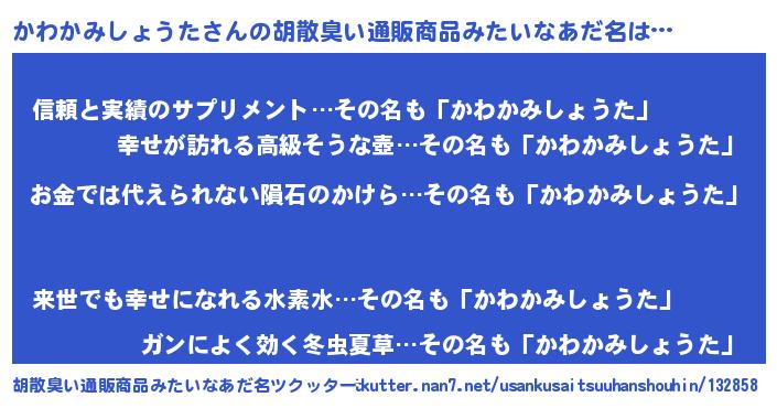 | 女子向けラノベタイトル風あだ名 | 『かわかみしょうた恋絵巻』 |
