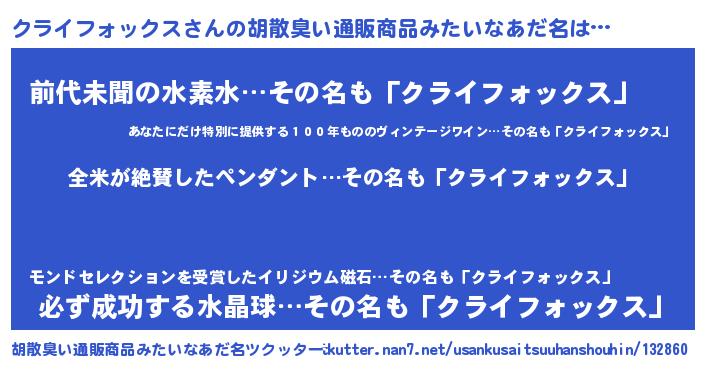 | ヘコむあだ名 | 『クラっちょ』『クライフォックス(苦笑)』 |