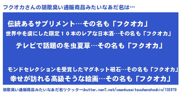 | ヒーロー風カッコイイあだ名 | 『ウルトラ戦士フクオカ』『幻影騎士フク』 |