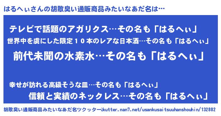 | 意味不明あだ名 | 『永久保存はるへぃ』『自称はるへぃ』 |