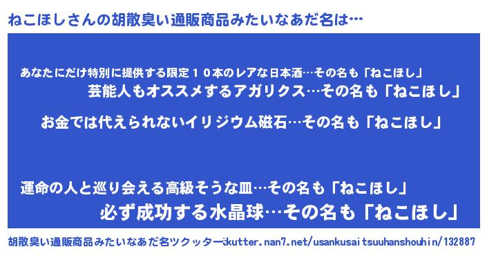 | 欧米人風あだ名 | 『ダニエルねこほし』『マイケルねこほし』 |