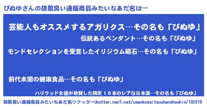 | ヘコむあだ名 | 『ぴぬ太郎』『ぴぬゆ(遠い目)』 |