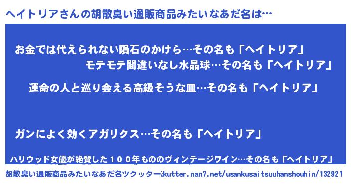 | 欧米人風あだ名 | 『トリンドルヘイトリア』 |