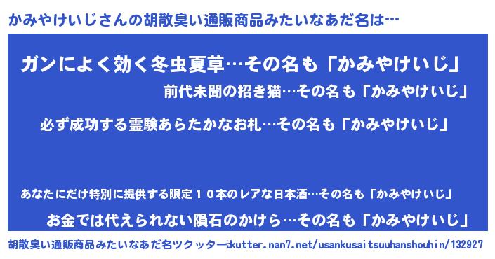 かみやけいじさんの胡散臭い通販商品みたいなあだ名をツクッター!