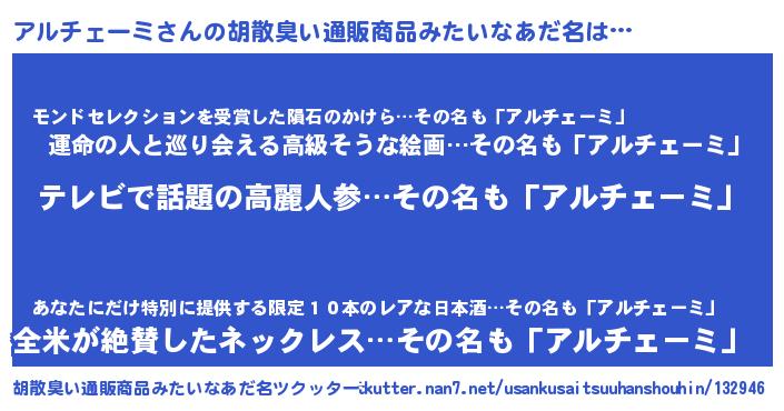 | 意味不明あだ名 | 『自称アルチェーミ』 |