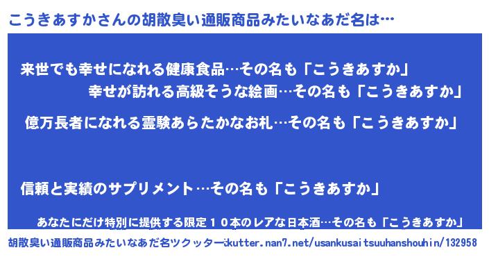| 伝説のあだ名 | 『封印されしスナイパーこうきあすか』 |