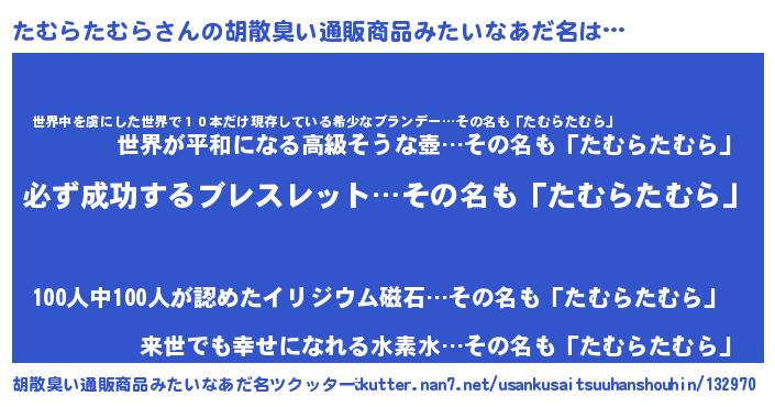 | 男性向けラノベタイトル風あだ名 | 『たむらたむらの憂鬱』 |