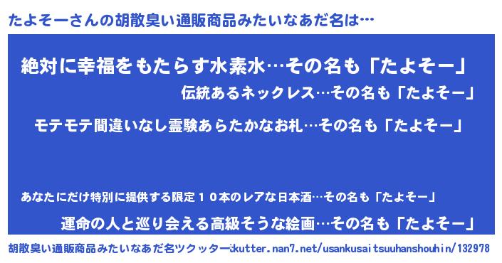 | ヘコむあだ名 | 『たよっふぃ~』『たよそー(笑)』 |