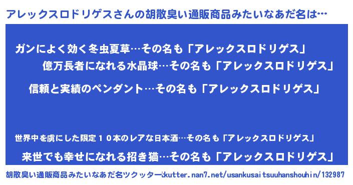 | 伝説のあだ名 | 『孤高の遊び人アレックスロドリゲス』 |