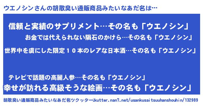 | 意味不明あだ名 | 『住所不定無職ウエノシン(50歳)』 |