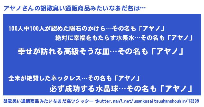 | ヘコむあだ名 | 『つくし』『アヤもー』『アヤノ(爆)』 |