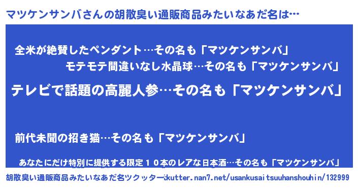 | 意味不明あだ名 | 『自称マツケンサンバ』 |