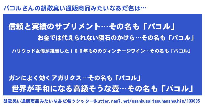 | ヘコむあだ名 | 『パコお』『つくし』『パコにー』 |