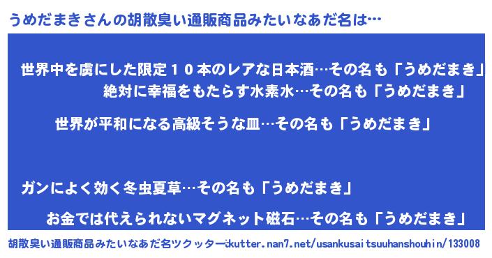 | 意味不明あだ名 | 『うめだまきフォーエバー』 |