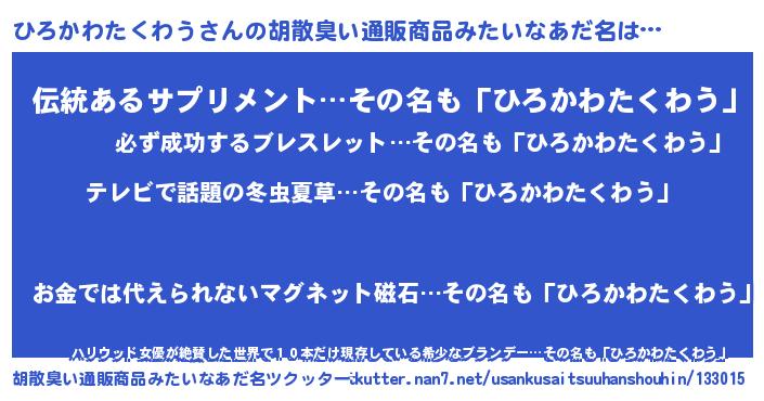 | 伝説のあだ名 | 『解き放たれた遊び人ひろかわたくわう』 |