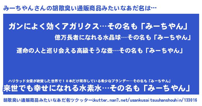 | 意味不明あだ名 | 『みーちやんフォーエバー』 |