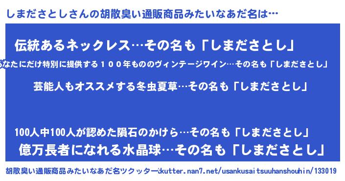 | 意味不明あだ名 | 『自称しまださとし』 |