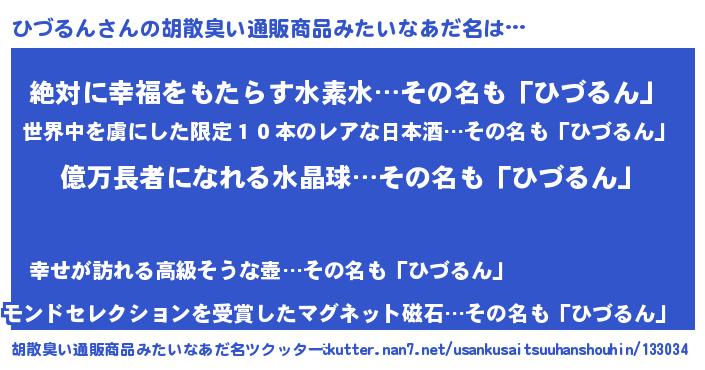 | 男性向けラノベタイトル風あだ名 | 『ヒヅルンアートオンライン』 |