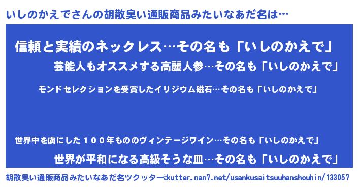 | ヘコむあだ名 | 『いしっぺ』『牛乳』『いしもー』 |