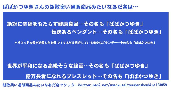 | 意味不明あだ名 | 『住所不定無職ばばかつゆき(93歳)』 |