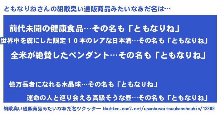 | ヘコむあだ名 | 『ともっぺ』『ともなりね(笑)』 |
