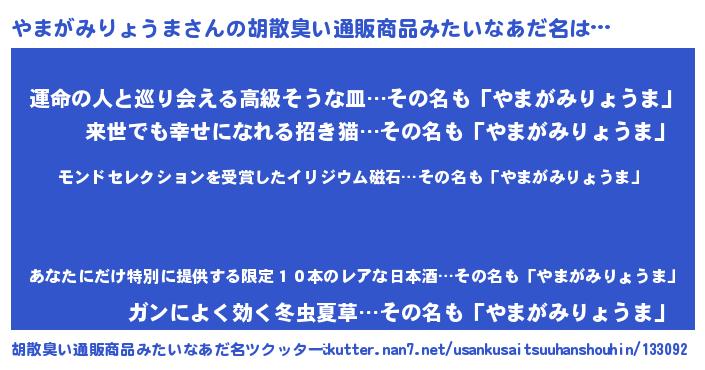| 男性向けラノベタイトル風あだ名 | 『ノーゲーム・ノーヤマガミリョウマ』 |