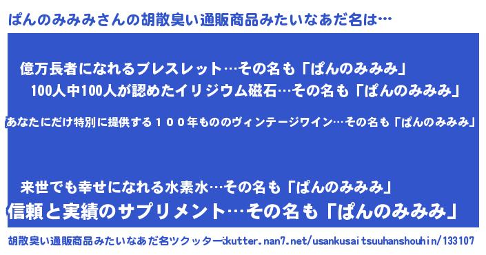 | ヒーロー風カッコイイあだ名 | 『仮面パンダー』『スーパーパンノミミミ』 |