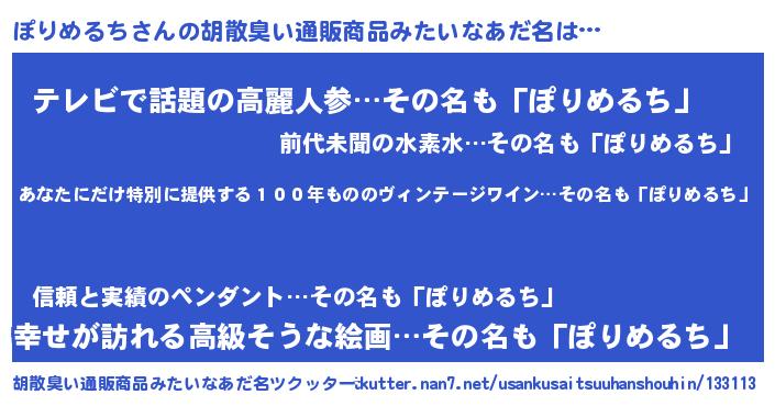 | 意味不明あだ名 | 『住所不定無職ぽりめるち(9歳)』 |