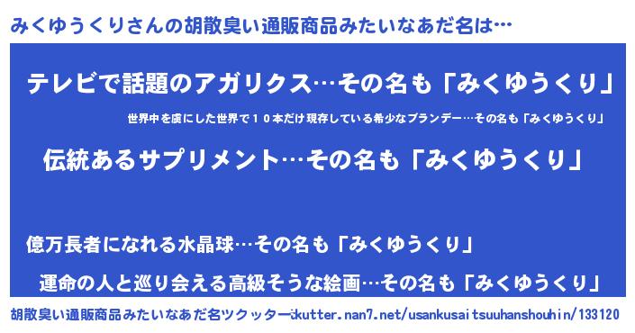 | 男性向けラノベタイトル風あだ名 | 『ダンジョンにみくゆうくりを求めるのは間違っているだろうか』 |