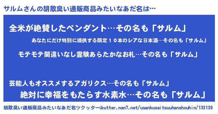 | 意味不明あだ名 | 『ペロリンサルム』『永久保存サルム』 |
