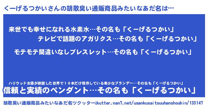 | ヘコむあだ名 | 『くーふぇ~』『くーげるつかい(爆)』 |