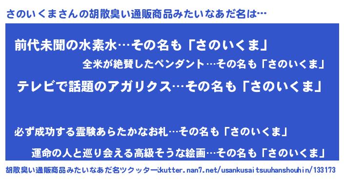 | ヘコむあだ名 | 『さのいくま(爆)』『酢こんぶ』 |