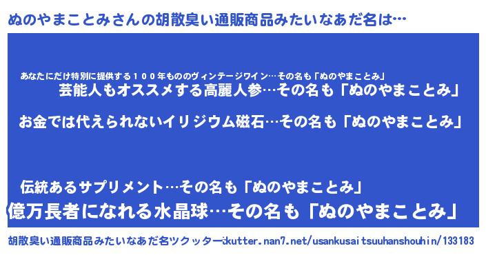 | 女子向けラノベタイトル風あだ名 | 『ぬのやまことみ恋絵巻』 |