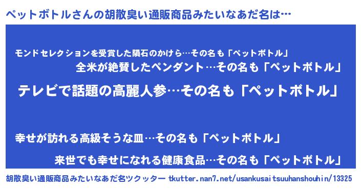 | 意味不明あだ名 | 『自称ペットボトル』 |