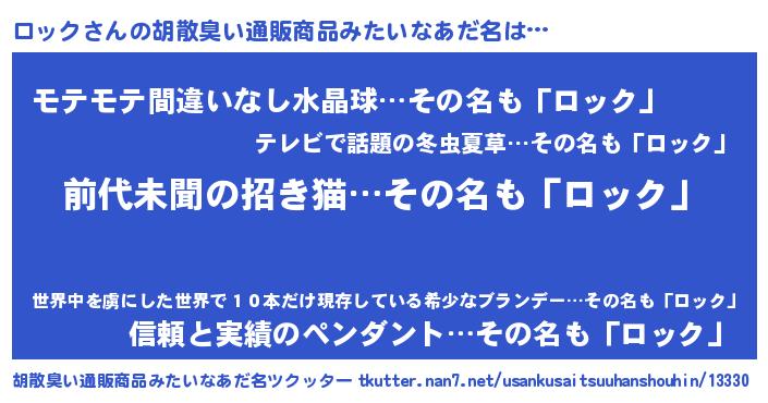 | ヘコむあだ名 | 『ロック(笑)』『ロッにゅー』『豆乳』 |