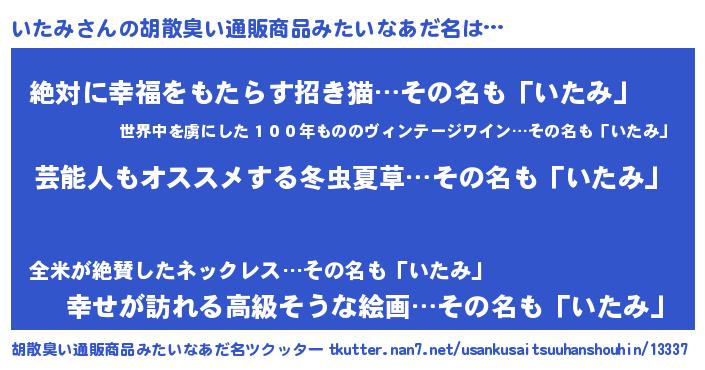 | ヘコむあだ名 | 『いたみ(苦笑)』『牛乳』『いた太郎』 |
