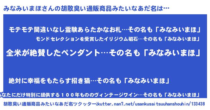 | 意味不明あだ名 | 『とにかく怪しいみなみいまほ』 |