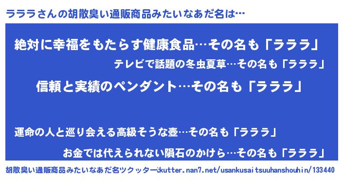 | 女子向けラノベタイトル風あだ名 | 『ラララは平凡を望む』『ラララ恋絵巻』 |