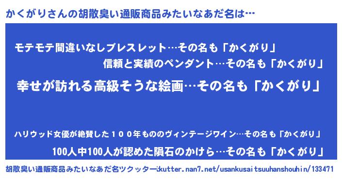 | 意味不明あだ名 | 『かくがりフォーエバー』 |