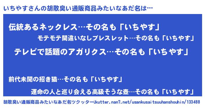 | 意味不明あだ名 | 『自称いちやす』『いちやすフォーエバー』 |