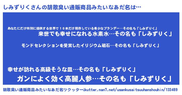 | 男性向けラノベタイトル風あだ名 | 『ノーゲーム・ノーシミズリク』 |