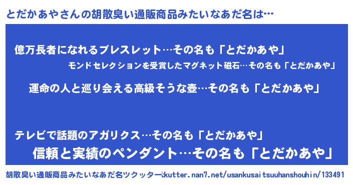 | 恥ずかしいあだ名 | 『とだっちょ』『プリティーとだかあや』 |