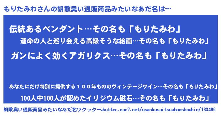 | 意味不明あだ名 | 『自称もりたみわ』 |